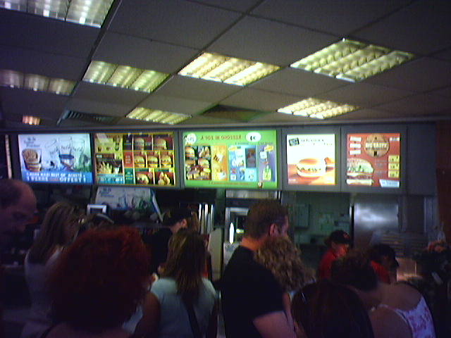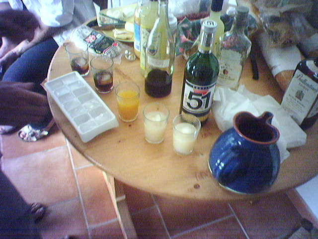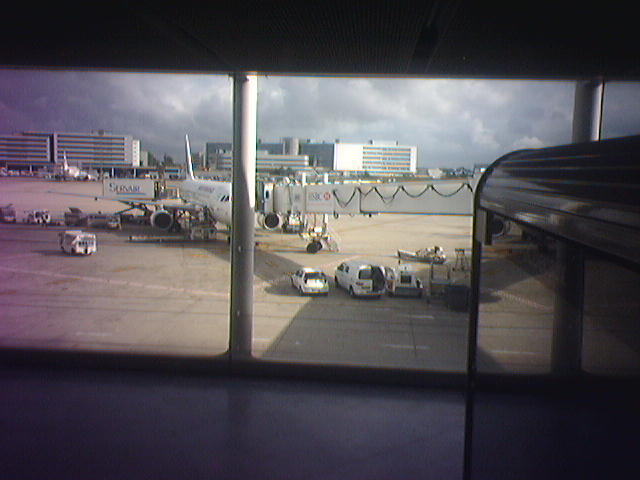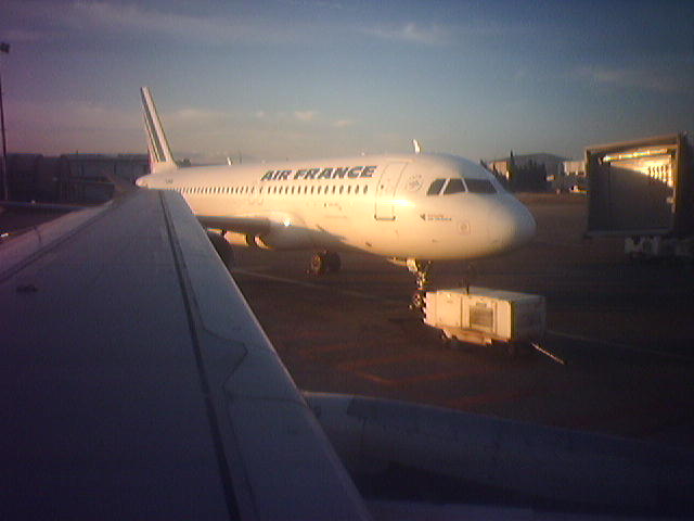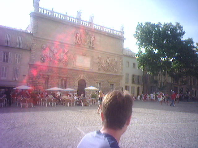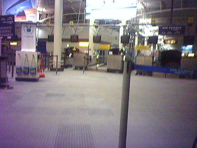 my distaste for airports soon became justified... Edit: Sorry for a somewhat lack of continuity, after most of the eventful stuff that happened amongst all the angst of traveling in airports, I was convinced to continue making daily updates to this page (internet connectivity pending). My first problem, was mistaking a Thursday for being a Friday. This just meant that I was one day ahead of myself and that I could relax for a day. The next afternoon, I was off to the Pittsburgh International Airport. I checked my guitar and some bag that belonged to Cheryl, got my boarding pass, headed to the gate. Fortunately, there was a bar right across the way from the gate, so I was able to drink there until it was time to get on the plane. Unfortunately, I failed to notice that I was boarding the plane 30 minutes AFTER the plane was scheduled to have left. This mistake would foreshadow the things to come. So now I'm on a little Continental Express flyer, somewhere over Pennsylvania. No problems. That is until we land in Newark, about 40 minutes late (stems from leaving 40 minutes late), and we are taxiing to our gate, and it takes us 30 minutes to do that. (Newark Airport)--;. This is bad. I need to get onto an Air France flight to Paris in about 20 minutes. This entails walking to the end of my current terminal (C), getting on a train, get off at the next terminal (B), then walk to the ticketing counter to get my boarding pass, then go through security, then traverse this terminal to get to the gate. My little quest through Newark Airport was brought to an abrupt halt at the Air France ticketing counter in terminal B, however, by a not very nice french desk attendant. Having about 10 minutes left, he told me I was too late (I would later find out that I was mysteriously upgraded to first class on this flight). He then told me that it wasn't Air France's fault that I was here late and that I should go to Continental's ticketing counter since their plane was the one that caused me to miss my Air France flight. This means another train ride for me. Back in terminal C, I find my way to the international flights ticket counter to be greeted by a long line. After about 30 minutes in this line, the guy at the counter tells me I need to talk to Air France, since I bought my tickets through them, and that I should probably get them to get me a hotel room for the night. This, of course, means another train ride. Back in terminal B, I'm greeted by the same not very friendly french guy, he says they won't get me a hotel room, that there was nothing they could do, and that I should continue to talk to Continental. So, another train ride later, I'm back in terminal C at the back of a very long line leading up to the international flights ticket counter. This time I get some lady, she is sympathetic to my cause. She tells me there is a flight to paris tonight at 10pm, but I'll have to be on standby. 2 hours later, me and about 5 other people are waiting at the gate, watching an entire planeload of people disappear through the gate doors, the gate that would get me to Paris. An hour later, me and the 5 other people are told we should go to the Customer Service Center and get a hotel room. It wasn't all that bad. The customer service lady was pretty nice, I requested a hotel with a bar and got the Hilton, and I got boarding passes for a flight leaving at 6pm the next day to Paris and the one from Paris to Marseille. While waiting for the train that would take me to the parking area where the hotel shuttles were, I noticed that one of the flight info screens had crashed. Funny. So they use Windows 2000. I also noticed that every few hundred feet there was a Defibrillator on the walls. I think there were more of these than there were fire extinguishers. Finally, I arrive at the curb where the shuttles are. It is very hot and humid in Newark, and this makes waiting for a shuttle outside very painful. Eventually, I am wisked away to the Gateway Hilton, and after about 20 minutes in line (with all the other people from the airport that got the shaft) I get my keycard and I'm off for a quick change of clothing. Then it's off to the hotel bar. I order a Jameson's on the rocks, I get this glass with a pitiful amount of whiskey in it. It disappeares before the bartender turns around, "Want another?", he asks me. I tell him that my day was filled with pain, pain that can only be relieved by inebriation. I give him a credit card and say, "Whenever this glass looks empty, it needs to be refilled, to the top", and the bartender knew exactly what I meant, bartenders of this caliber are rare. Last call comes around, the bartender continues to pour, he tells me he's only going to charge me singles for these next few. The time is 1:50, the pizza shop that I planned to order pizza from closes at 2:00. With the tab taken care of, I start calling to order a pizza while I make my way to my room. At this point things start getting a little blurry. It takes an hour for the pizza to arrive at the hotel, there was some girls that couldn't get to the pool because they left their keycard in the room, eating pizza, anime on laptop, passing out, something... I wake up with a pizza box and my laptop on my stomach. It's 9am (wtf?). I get some ice and drink some water, made some coffee, and did some work on my laptop. At noon, the hotel kicks me out so I make my way to the airport. Michelle calls me and says she is going to try to get me upgraded to first class. As I am talking to the same not very friendly french guy at the Air France ticket counter, I see that getting upgraded isn't going to happen. With many hours to kill, and still without any food in my stomach, I do the most logical thing I could think of: Find a bar with a power outlet and drink bloody mary's while watching anime on my laptop. Several hours go by and I make my way to the gate. Things seem to go a little more smoothly today. I get on the plane, which was on time, and I'm g