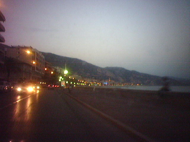 we pass Nice, pass a few smaller towns whose names I don't remember,