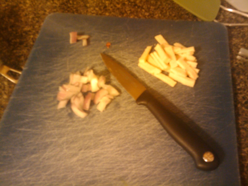 Dice up some onions and smoked gouda.